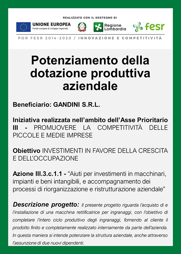 Gandini Ingranaggi si sviluppa su 3000 mq coperti, dispone di un ampio parco macchine di ultima generazione, di un completo magazzino utensili che le permette di offrire alla propria clientela una produzione dalla lavorazione singola alla fornitura completa, in piccole e medie quantità.